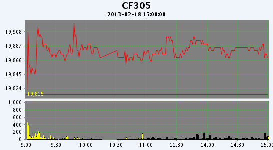 2月18日,鄭棉主要合約低開,早盤反彈后橫向整理,日線形成低開陽線,日內(nèi)遠(yuǎn)月成交量萎縮,持倉量減少。CF1305合約日成交6208手,日減倉1466手,終盤持倉量49672手;CF1309合約日成交74680手,日減倉1290手,終盤持倉量141818手?;久媲闆r:大多棉企仍未開工,但部分存棉量較大的棉企陸續(xù)已有工人返廠,現(xiàn)貨市場則維持節(jié)前行情。棉副方面,由于油廠幾乎還未開工,棉副產(chǎn)品雖有報價,但幾乎無成交。紡織企業(yè)節(jié)后采購未啟動。