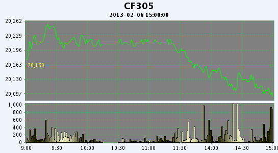 主力CF305合約當(dāng)日交易走勢圖