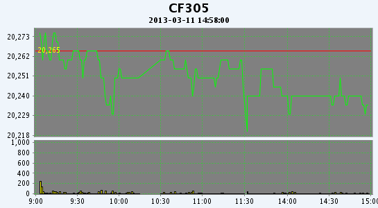 近期CF305合約當日交易走勢圖