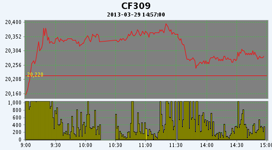 主力CF309合約當日交易走勢圖