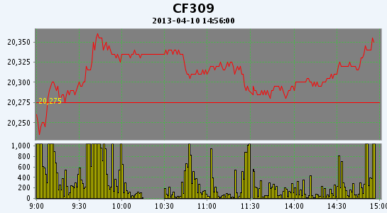 4月10日,鄭棉主要合約小幅低開,早盤受多頭買盤推動上行,隨后在空頭回補的支撐下盤整,尾盤在集中回補買盤的作用下強力收高,日線形成陽線,日內(nèi)成交量放大,持倉量減少。CF1309合約日成交109032手,日減倉1852手,終盤持倉量135916手;CF1401合約日成交3726手,日增倉888手,終盤持倉量33986手?;久媲闆r:國內(nèi)棉花現(xiàn)貨市場整體成交清淡,價格平穩(wěn)。因當(dāng)前可供紡織企業(yè)采購資源不足,下游企業(yè)在現(xiàn)貨采購上極少,儲備棉和進口棉依舊是企業(yè)的首選。當(dāng)前是紡織市場的傳統(tǒng)旺季,但是企業(yè)仍然感到外貿(mào)訂單不多,市場表現(xiàn)雖有好轉(zhuǎn)但動力不足。企業(yè)表示,在外需不振的情況下僅僅依靠內(nèi)需使得企業(yè)信心不足。另外今日棉副產(chǎn)品,棉油、粕兩大主要產(chǎn)品行情表現(xiàn)均較為低迷,棉短絨、棉殼需求也不算理想,下游產(chǎn)品多處于行情弱勢階段,整體看,棉副產(chǎn)品表現(xiàn)疲軟,雖然市場上貨源已經(jīng)不多,但依然難阻行情下滑,進一步影響到棉籽需求,使得貨少持價的棉籽不得以開始降價,成交情況顯得清淡。