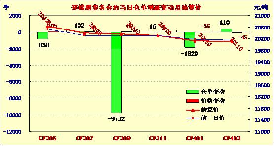 4月11日,鄭棉主要合約小幅低開(kāi),早盤(pán)增倉(cāng)上沖后在平倉(cāng)盤(pán)的壓力下震蕩下滑,日線形成陰線,日內(nèi)成交量變化不大,持倉(cāng)量減少。CF1309合約日成交96228手,日減倉(cāng)9782手,終盤(pán)持倉(cāng)量126184手;CF1401合約日成交7662手,日減倉(cāng)1820手,終盤(pán)持倉(cāng)量32166手。基本面情況:國(guó)內(nèi)棉花現(xiàn)貨市場(chǎng)整體成交清淡,價(jià)格平穩(wěn)。因當(dāng)前可供紡織企業(yè)采購(gòu)資源不足,下游企業(yè)在現(xiàn)貨采購(gòu)上極少,儲(chǔ)備棉和進(jìn)口棉依舊是企業(yè)的首選。當(dāng)前各棉區(qū)已經(jīng)進(jìn)入播種階段,棉農(nóng)積極購(gòu)買(mǎi)農(nóng)資,進(jìn)行播種。但是大規(guī)模的種植預(yù)計(jì)要到本月中旬之后。今日棉副產(chǎn)品依舊比較低迷,自H7N9禽流感在長(zhǎng)三角爆發(fā)以后,人們對(duì)于肉類食物的攝入明顯持謹(jǐn)慎態(tài)度,導(dǎo)致市場(chǎng)對(duì)于飼料的需求預(yù)期偏弱,各地棉籽價(jià)格呈現(xiàn)疲態(tài)已多日,當(dāng)前主流價(jià)格區(qū)間至1.05-1.2元/斤,出油率偏低的甚至出現(xiàn)0.95元/斤的價(jià)格,且短線尚未看到改善的征兆。
