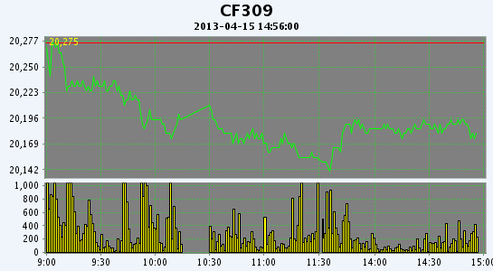 主力CF309合約當(dāng)日交易走勢圖