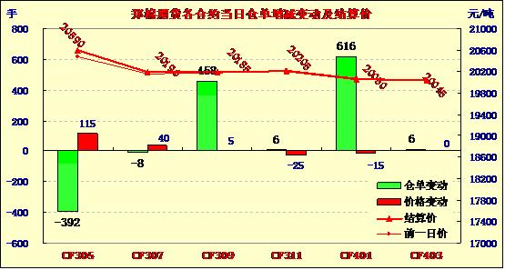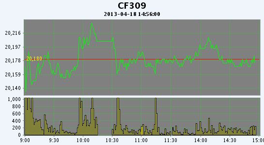 4月18日,鄭棉近月CF305合約小幅高開,日內(nèi)震蕩上行,結(jié)于20590,漲115元/噸,成交1198手,終盤持倉減392手至9842。主力CF309合約小幅低開,盤中寬幅震蕩,結(jié)于20175,跌5元/噸,成交54952手,終盤持倉增458手至117488手。倉單53張,有效預(yù)報61張,近幾日有效預(yù)報增加。據(jù)公告,即日起將投放向市場投放部分2011年度的進口棉及2012年度的新棉。允許內(nèi)地紡織企業(yè)購買在新疆投放的儲備棉。今日資源中有2431噸2012年度產(chǎn)的棉花,為年度內(nèi)首次輪出新棉,其中承儲在山東博安倉儲有限公司1568噸,其余862噸承儲在新疆石河子天銀物流有限公司。