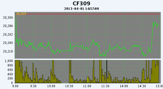 主力CF309合約當日交易走勢圖
