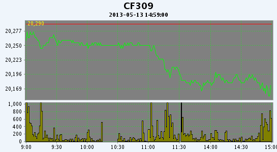 主力CF309合約當(dāng)日交易走勢圖