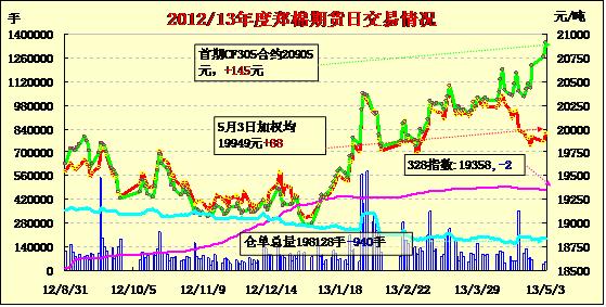 鄭棉期貨重心上移近月合約持續(xù)飚漲(5-3)
