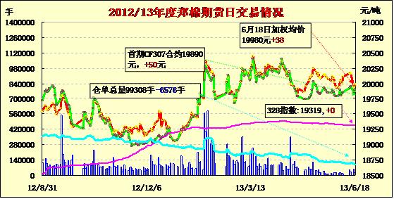 6月18日,鄭棉CF1401合約小幅高開,早盤在空頭回補(bǔ)支撐下走高,此后橫向盤整,日線形成長下影線的陽線,日內(nèi)成交量萎縮,持倉量減少。CF1309合約日成交3450手,日減倉1088手,終盤持倉量37992手;CF1401合約日成交19316手,日減倉5602手,終盤持倉量49984手。 基本面情況:現(xiàn)貨市場仍保持平穩(wěn)。國儲進(jìn)口棉競拍仍較為激烈,依然是紡企首選。據(jù)紡企反映,主要是國內(nèi)棉花質(zhì)量差于進(jìn)口棉,新疆棉也不如往年,斷裂比強(qiáng)度以前的都是31-32,而現(xiàn)在的只有26-27。可能與棉農(nóng)種植品種改變也有關(guān),現(xiàn)在大多品種更注重提高畝產(chǎn)。 另據(jù)悉,2012年度臨時收儲實(shí)際入庫量662萬噸,其中新疆421萬噸和內(nèi)地241萬噸。