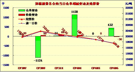 6月24日,鄭棉CF1401合約平開,盤中在多頭買盤推動下回升整理,日線形成小陽線,日內(nèi)成交量放大,持倉量增加。CF1309合約日成交2096手,日減倉1124手,終盤持倉量33146手;CF1401合約日成交15192手,日增倉1128手,終盤持倉量52860手?;久媲闆r:近期,受國儲棉投放占領(lǐng)市場影響,電子盤市場表現(xiàn)低迷,持倉量成交量均下降,成交價(jià)格也連續(xù)震蕩下跌。紡企繼續(xù)購買國儲棉為主,但部分紡企現(xiàn)資金緊張狀況?,F(xiàn)貨價(jià)格繼續(xù)保持平穩(wěn),市場有價(jià)無市。部分棉區(qū)持續(xù)陰雨天氣,對于普遍進(jìn)入初蕾期的棉花生長不利。