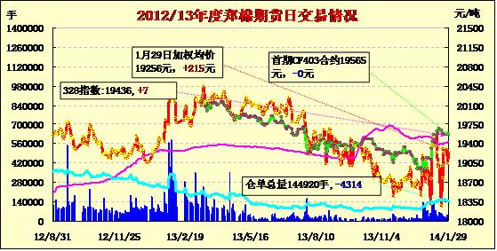 1月29日,鄭棉CF1405合約平開,早盤在空頭回補推動下上沖,隨后區(qū)間整理,日線形成小陽線,日內(nèi)成交量萎縮,持倉量減少。CF1405合約日成交7978手,日減倉3286手,終盤持倉量69394手;CF1409合約日成交1310手,日減倉730手,終盤持倉量22888手。基本面情況:國內(nèi)各地大部分企業(yè)基本已停工放假。南疆主產(chǎn)區(qū)軋花廠大多有一定量的皮棉現(xiàn)貨沒有銷售,只能留到2月中下旬再銷售,由于數(shù)量少盡量選擇廠內(nèi)出貨。棉副市場產(chǎn)品報價穩(wěn)定,節(jié)前成交稀少,物流漸停,企業(yè)看好年后棉油、棉粕行情。
