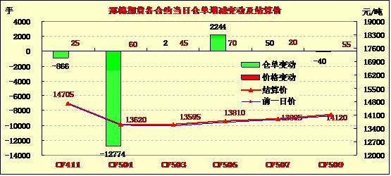 10月10日,鄭棉CF1501合約低開,早盤下試后在多頭買盤推動(dòng)下回升,盤中高位震蕩減倉(cāng),尾盤收于日內(nèi)次高點(diǎn),日線形成陽(yáng)線,日內(nèi)成交量萎縮,持倉(cāng)量減少?;久媲闆r:國(guó)慶節(jié)后,河南南陽(yáng)多數(shù)棉花收購(gòu)企業(yè)仍以觀望為主,只有少量棉花企業(yè)開門收購(gòu)。1228級(jí)收購(gòu)報(bào)價(jià)2.7元/斤,2227級(jí)報(bào)價(jià)2.65元/斤,棉農(nóng)對(duì)當(dāng)前價(jià)格難以接受,交售不積極,偶有詢價(jià),但無(wú)人交售。而棉企方面由于對(duì)當(dāng)?shù)?a href='http://m.qdhqly.cn/News/Channel/?CID=31' title='更多棉花信息' target='_blank'>棉花品級(jí)和質(zhì)量不看好,為了減少風(fēng)險(xiǎn),收購(gòu)意愿也不強(qiáng)烈,市場(chǎng)進(jìn)入僵持階段。