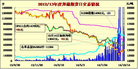 鄭棉期貨調(diào)整回穩(wěn)減倉(cāng)收高(10-14)