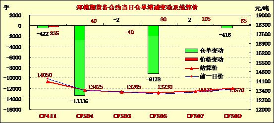 11月7日,鄭棉CF1501、1505合約平開(kāi),盤(pán)中窄幅震蕩,日線形成小陰線,日內(nèi)成交量萎縮,持倉(cāng)量減少。相關(guān)市場(chǎng)情況:周四ICE棉花期貨止跌反彈。基本面情況:北疆機(jī)采棉價(jià)格差距依然明顯,軋花廠對(duì)籽棉含雜情況及回潮率控制嚴(yán)格,優(yōu)質(zhì)的機(jī)采籽棉最高可收至5.4-5.45元/公斤,而一些水雜含量較高、顏色不佳的籽棉則普遍低于5元/公斤。近期機(jī)采棉陸續(xù)加工,各地進(jìn)度不一,部分上市的機(jī)采皮棉報(bào)價(jià)在13800-14000元/噸,質(zhì)量同樣影響機(jī)采皮棉的價(jià)格大幅波動(dòng)。手采棉基本維持平穩(wěn),霜花多數(shù)軋花廠仍然拒收,優(yōu)質(zhì)中期花的收價(jià)在6.0-6.2元/公斤,皮棉站臺(tái)提貨價(jià)則維持在14600-14700元/噸。