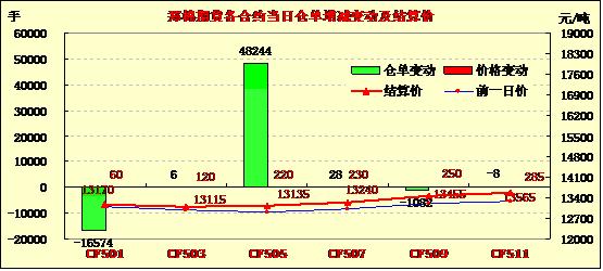 12月12日,鄭棉1505合約高開,盤中在多頭買盤推動(dòng)下上漲,日線形成陽(yáng)線,日內(nèi)成交量放大,持倉(cāng)量增加?;久媲闆r:新疆巴州和碩一帶棉農(nóng)采摘交售尚未結(jié)束,尾期交售價(jià)格只有3.8元/公斤。當(dāng)?shù)亟衲曜衙迒萎a(chǎn)普遍在160公斤左右,較去年還要差。當(dāng)?shù)孛揶r(nóng)分析主要原因是今年春播時(shí)期受到大風(fēng)影響,重播三次,10月下旬又遇早霜。
