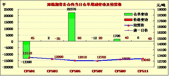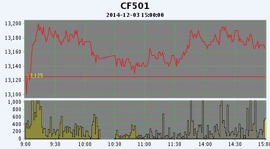 12月3日,鄭棉CF1501、1505合約高開,早盤在多頭買盤推動下沖高,隨后受零散平倉盤壓制下滑,午在多頭買盤再度介入,推動期期價沖高,日線形成陽線,日內(nèi)成交量放大,持倉量近減遠(yuǎn)增?;久媲闆r:北疆站臺皮棉成交不佳,白棉三級手采棉主流報價14000元/噸,白棉二級占比較高的報14200元/噸,機采棉主流報價13000-13300元/噸,少數(shù)優(yōu)質(zhì)機采13500元/噸。手采與機采皮棉近期均存在順價走貨現(xiàn)象,多數(shù)為后期花且銷售量較低。 站臺購銷氛圍冷清,但軋花廠普遍認(rèn)為棉價難有下調(diào)空間,對于紡企壓價認(rèn)可度不高。近期赴疆采購的貿(mào)易商多數(shù)離開新疆,紡織企業(yè)若非庫存告急也未有大量采購計劃,觀望心態(tài)繼續(xù)占據(jù)主導(dǎo)。