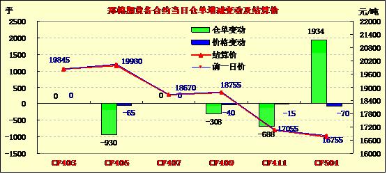 2月18日,鄭棉CF1405合約高開,盤中區(qū)間盤整,尾盤在多頭集中平倉壓制下走低,日線形成高開陰線,日內(nèi)成交量萎縮,持倉量減少。CF1405合約日成交9354手,日減倉930手,終盤持倉量73902手;CF1409合約日成交1962手,日減倉308手,終盤持倉量21840手?;久媲闆r:2014年1月份我國累計進口棉花29.25萬噸,本年度以來我國累計進口棉花141.64萬噸;據(jù)了解,2月上旬以來廣東黃浦、佛山、上海、張家港、青島等港口外紗的抵港量有明顯的上升跡象。