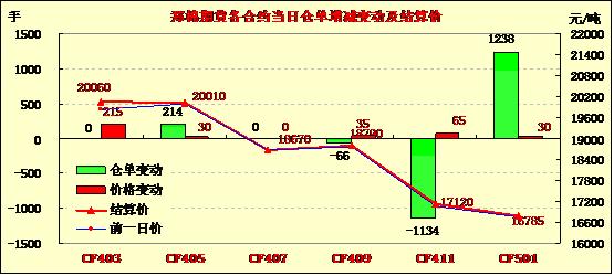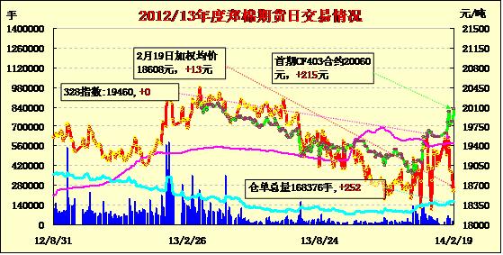 2月19日,鄭棉CF1405合約平開,早盤沖高回落后于低位盤整,尾盤在多頭買盤推動(dòng)下收高,日線形成陽(yáng)線,日內(nèi)成交量萎縮,持倉(cāng)量增加。CF1405合約日成交77244手,日增倉(cāng)214手,終盤持倉(cāng)量74116手;CF1409合約日成交1488手,日減倉(cāng)66手,終盤持倉(cāng)量21774手。基本面情況:據(jù)了解,雖然近兩日ICE棉花期貨價(jià)格有所下滑,但相比1月底仍處于高位,港口現(xiàn)貨銷售仍疲弱;下游需要目前仍舊顯得清淡,由于內(nèi)外棉價(jià)差仍舊較大,東南亞市場(chǎng)對(duì)國(guó)內(nèi)影響仍舊較大。