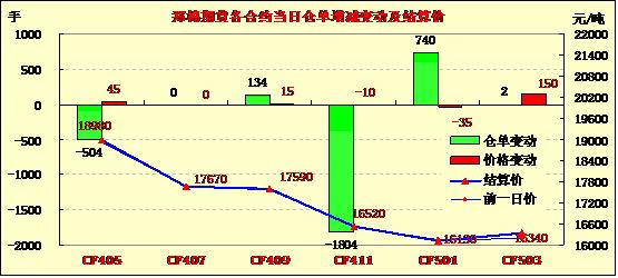 3月18日,鄭棉CF1405合約小幅高開,早盤窄幅震蕩,午后一度在空頭回補(bǔ)推動下沖高,但是很快受平倉盤壓制回落,日線形成陰線星,日內(nèi)成交量萎縮,持倉量減少。CF1405合約日成交6014手,日減倉504手,終盤持倉量48762手;CF1409合約日成交13364手,日增倉134手,終盤持倉量40692手。基本面情況:受市場預(yù)期4月之后拋儲降價(jià)的影響。企業(yè)庫存維持偏緊,等待新一輪拋儲政策;港口外棉價(jià)格維持高位,鮮有成交;另外近期紗價(jià)也有下跌趨勢。