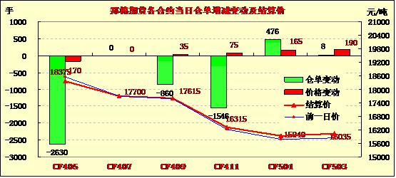 3月26日,鄭棉CF1405合約高開,盤中在平倉盤壓制下盤跌,日線形成高開陰線,日內(nèi)成交量萎縮,持倉量變化不大。CF1405合約日成交2542手,日減倉66手,終盤持倉量2542手;CF1409合約日成交13328手,日減倉2508手,終盤持倉量39392手。