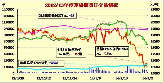 鄭棉期貨減倉下行多數(shù)續(xù)跌(04-02)