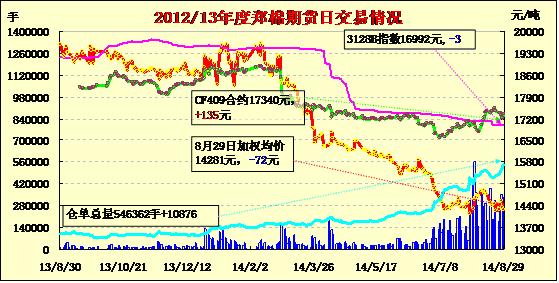 鄭棉期貨繼續(xù)低開遠期續(xù)跌(08-29)