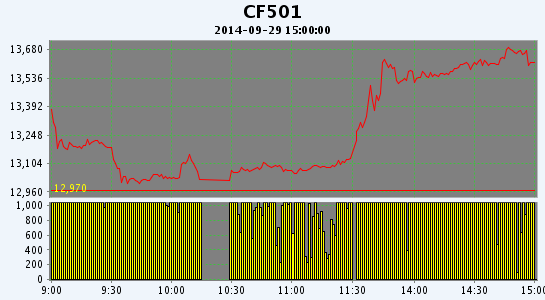 9月29日,鄭棉CF1501合約高開,早盤在平倉盤打壓下走低,午后空頭集中回補,推動期價大幅上揚,日線形成高開1/2下影線的長陽線,日內(nèi)成交量創(chuàng)新高,持倉量大幅減少。基本面情況:據(jù)調(diào)查,9月20-25日阿克蘇地區(qū)棉籽到廠銷售價約1.86-1.90元/公斤,西大橋某兩家軋花廠加工后積極銷售棉籽,買家為阿克蘇周邊榨油廠;但26-28日棉籽價格普降0.10-0.15元/公斤,由于大部分油廠農(nóng)發(fā)行、信用社貸款沒有批下來,因此市場成交寥寥無幾。另悉,由新疆自治區(qū)發(fā)改委訂做的“目標(biāo)價格改革棉花企業(yè)”牌子已陸續(xù)發(fā)放到各縣一級發(fā)改委,少數(shù)企業(yè)已拿到手,農(nóng)民交售籽棉時必須亮明“身份”,解除棉農(nóng)顧慮,加快籽棉收購進度。