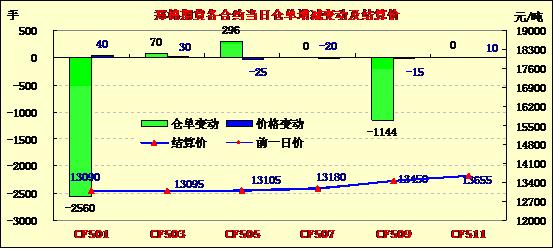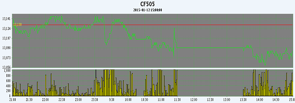 1月12日,隔夜鄭棉CF1505合約區(qū)間震蕩,今日早盤在多頭平倉和空頭賣盤壓制下調整,日線形成小陰線,日內成交量與持倉量變化不大?;久媲闆r:近期棉企籽棉收購基本正常,質量較好的籽棉收購價格比較穩(wěn)定。但由于尾期花上市,棉農和棉販子交售的籽棉中既有前期的中花,又有后期的尾花、霜黃棉及部分雨銹棉,棉企普遍加強質檢,給出的收購價也高低懸殊。白棉3級、含水13點以內、40斤衣分的籽棉收購價穩(wěn)定在3.08-3.10元/斤,霜黃棉和瓣子定價較低,在2.00-2.70元/斤范圍內。