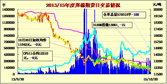 | CF605 | 11700 | 11800 | 11685 | 11735 | 11740 | -10 | 66450 | -29376 | 1454980 | 262350 | 9894 |