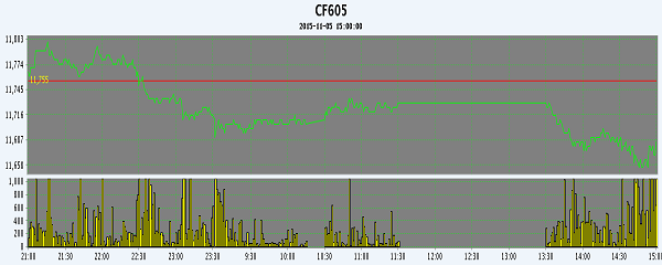 11月5日,隔夜鄭棉CF1601、1605合約震蕩下滑,今日早盤在空頭賣盤壓制下走低,尾盤略有反彈,日線形成小陰線,日內(nèi)成交量變化不大,持倉量增加。基本面情況:河南、河北和江蘇等地的紡織企業(yè)表示,港口保稅區(qū)外棉和交易市場競賣的2014/15年度新疆棉、兵團(tuán)棉,品級下滑、強(qiáng)力下降、馬值也普遍偏大,雖然纖維長度較好,但紡40S及以上高支紗配棉有困難,補(bǔ)充高等級棉花原料庫存已迫在眉睫。11月2、3日南疆阿克蘇、巴楚等地站臺(tái)3128、2128的毛重提貨報(bào)價(jià)分別為12600-12800元/噸、12900-13000元/噸,采購企業(yè)對31、21級并不看重,差價(jià)僅100元/噸左右,主要考慮纖維長度、強(qiáng)力、馬值等指標(biāo),“雙28”“雙29”加價(jià)100元/噸。受新疆皮棉銷售逐漸回暖和鄭期遠(yuǎn)月合約持續(xù)上漲的拉動(dòng),疆內(nèi)軋花廠敢于提價(jià)0.05-0.10元/公斤搶收高品質(zhì)中期籽棉。