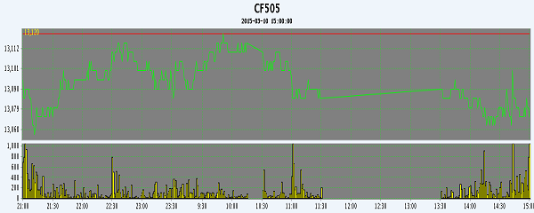3月10日,隔夜鄭棉CF1505合約小幅反彈,,今日早盤在多頭平倉打壓下走低,午后一度反彈,尾盤在平倉盤打壓下收低,日線形成小陰線,日內(nèi)成交量萎縮,持倉量繼續(xù)減少。基本面情況:德州地區(qū)軋花廠白棉3級收購價格在3.22元/斤(衣分40%左右),收購價格和節(jié)前基本保持持平,軋花廠日收購量在5-8萬斤,較上周有所增加。棉籽裝車價1.18元/斤,略降0.01元/斤。白棉三級棉成交13200元/噸(毛重 含稅),貨發(fā)江蘇到站13500-13600元/噸,精選三絲略高200元/噸,成交情況整體一般。價格較春節(jié)之前略上調(diào)100-200元/噸。東營地區(qū)籽棉收購價格稍高,白棉3級主流收購價格在3.25-3.3元/斤左右(衣分40%、回潮率10%),當(dāng)?shù)刈衙藁緹o量,僅零星收購,部分軋花廠至甘肅收購,但紡企采買一般,軋花廠操盤謹(jǐn)慎,目前皮棉主流維持在13200-13400元/噸,成交仍難成規(guī)模,觀望中維持順價小單走量。