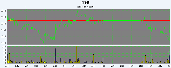 3月13日,隔夜鄭棉CF1505合約調(diào)整,今日早盤(pán)在空頭回補(bǔ)推動(dòng)下沖高,午后多頭平倉(cāng)壓制期價(jià)回落,日線形成陰線星,日內(nèi)成交量萎縮,持倉(cāng)量繼續(xù)減少?;久媲闆r:據(jù)了解,2015新疆兵團(tuán)皮棉價(jià)格下調(diào)的傳言在市場(chǎng)不脛而走,許多地方上的棉企聽(tīng)聞后都大受打擊。眾所周知,兵團(tuán)棉花具備質(zhì)量好、雜質(zhì)少等優(yōu)點(diǎn),而地方上加工的棉花質(zhì)量參差不齊,唯一的優(yōu)勢(shì)便是相對(duì)優(yōu)惠的價(jià)格。兵團(tuán)下調(diào)皮棉價(jià)格,提高了市場(chǎng)競(jìng)爭(zhēng)力,地方棉企在價(jià)格上的優(yōu)勢(shì)被進(jìn)一步削弱,處境更加困難。