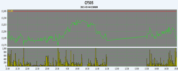 3月4日,隔夜鄭棉CF1505合約下滑,今日早盤在空頭回補推動下反彈,隨后在多頭平倉盤壓制下回落,尾盤多頭集中減倉,期價隨之收低,日線形成陽線星,日內(nèi)成交量萎縮,持倉量減少?;久媲闆r:據(jù)對江蘇省鹽城市的幾家信息采集點匯報,從正月初十起,大豐、射陽38%衣份,正三軟四的籽棉,收購企業(yè)亮出的報價為2.80-3.00一斤,比節(jié)前高出0.15-0.20元,級內(nèi)棉籽報價每斤也上行0.02-0.04元。不過,在此價格上行的情況下,收棉站依然難見售棉人,鹽城有企業(yè)擬把此“價幌” 挑到省外批量攬收,可在外的先行人員回報,各地棉花可收資源均是“孔乙已盤中的茴香豆”--不多也。