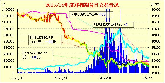 4月1日,隔夜鄭棉CF1509合約盤跌,今日盤早盤在空頭打壓下一度探低,隨后在空頭回補(bǔ)推動下反彈,午后平倉盤壓制期價調(diào)整,日內(nèi)成交量放大,持倉量增加?;久媲闆r:巴州一棉農(nóng)反饋,今年她的棉花種植面積從去年的300畝,減少到100畝,租地的費用去年為500元/畝,為了能從成本上減少點開支,她苦口婆心的和租主商量,今年的租地費用才減少為400元/畝,種子、化肥、薄膜等農(nóng)資與去年并沒有太大變化。由于2014年的補(bǔ)貼還沒有拿到手,所以沒有足夠的資金可以購買農(nóng)資物品,不過,她已經(jīng)和一些關(guān)系較好的農(nóng)商商量好,等天氣好點,可以先向他們賒些種子、化肥等物品,領(lǐng)到補(bǔ)貼后再還錢。該棉農(nóng)表示,不能因為資金而耽誤了播種進(jìn)度,否則土地再二次灌溉,又會增加了種植成本,更加得不償失。