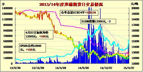 4月27日,隔夜鄭棉CF1509合約窄幅震蕩,今日盤中在多頭買盤推動(dòng)下走高,午后高位震蕩,日線形成陽線,日內(nèi)成交量放大,持倉量增加。基本面情況:目前,除巴州南部外,全疆大部棉花播種已接近尾聲,吐魯番、輪臺(tái)、阿克蘇大部分及南疆西部大部分棉花已出苗。全區(qū)春播進(jìn)度總體快于去年同期,其中南疆快于去年同期,北疆慢于去年同期。今明兩天,北疆將出現(xiàn)一場(chǎng)明顯大風(fēng)、降水、降溫天氣,南疆大部分地區(qū)將有不同程度的沙塵天氣,氣溫有較明顯下降。此次大風(fēng)、降水、降溫天氣對(duì)春播春管影響較大,對(duì)早播農(nóng)作物苗期生長也有不利影響,但降水對(duì)增加土壤墑情有利。南疆盆地大部分地區(qū)將出現(xiàn)的揚(yáng)沙或沙塵暴天氣,對(duì)已播棉田將造成不利影響。建議已播棉花等覆膜作物應(yīng)提前做好農(nóng)田覆土壓膜和滴水等防風(fēng)工作,尚未完成播種進(jìn)度的農(nóng)區(qū)需根據(jù)天氣變化及時(shí)調(diào)整春播生產(chǎn)進(jìn)度,雨后做好棉田的中耕松土、破板結(jié)等工作。