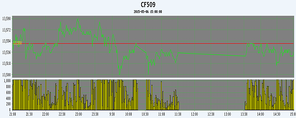 5月6日,隔夜鄭棉CF1509合約沖高,今日早盤在平倉盤壓制下調(diào)整,隨后區(qū)間震蕩,日線形成陽線星,日內(nèi)成交量萎縮,持倉量增加?;久媲闆r:通過對阿克蘇阿瓦提、巴楚縣阿納庫勒鄉(xiāng)個別棉農(nóng)詢問,了解到現(xiàn)在棉苗普遍生長情況良好,種植較早的棉苗已經(jīng)處于第三真葉期,較晚播種的棉苗目前是處于子葉期,由于及時關(guān)注了氣象信息,提前做好了準(zhǔn)備工作,所以大部分棉苗沒有受到沙塵天氣的影響。不過有的種植長絨棉的棉農(nóng)表示,7月份高溫天氣較集中,長絨棉可承受的溫度要比陸地棉低2-3℃,新疆的晝夜溫差又大,他今年種植密度大,1畝地有1萬多株,他擔(dān)心會影響長絨棉的生長,而且目前也沒有理想的解決辦法,但是該棉農(nóng)表示,如果今年天氣不像去年那么惡劣,他有信心今年產(chǎn)量會比去年有所提高。