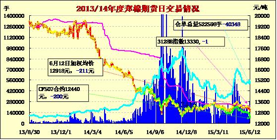 | CF509 | 12860 | 12870 | 12690 | 12740 | 12760 | -195 | 193274 | 33846 | 12729626 | 280688 | -12370 |