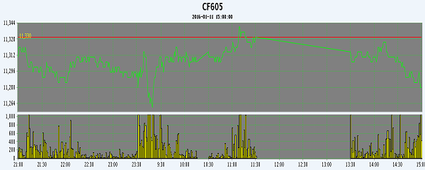 1月11日,隔夜鄭棉窄幅震蕩,今日盤中寬幅震蕩,遠(yuǎn)月走勢強(qiáng)于近月,CF1605合約日線形成小陰線,CF1609合約日線形成小陽線,日內(nèi)成交量萎縮,持倉量近減遠(yuǎn)增?;久媲闆r:臨近年底,疆內(nèi)棉花加工企業(yè)心態(tài)和操作上分化比較大,一些棉企因庫存以中高等級、高品質(zhì)皮棉為主(3128級馬值B、3128級馬值C、2128級馬值B、2128級馬值C2),在還貸壓力較輕、棉花成本與售價(jià)嚴(yán)重“倒掛”的情況下,并不打算降價(jià)出貨;而庫爾勒、哈密、阿克蘇等另一些棉花企業(yè)因棉纖維長度短、馬值C2以上以及纖維斷裂比強(qiáng)力低于27CN等庫存皮棉占比高而不得不“甩貨”,庫爾勒某廠2126級馬值C2站臺公檢毛重提貨價(jià)降至12100-12200元/噸。