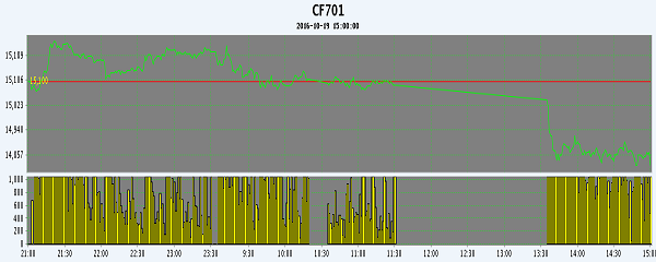 | CF709 | 15080 | 15225 | 14860 | 14860 | 14985 | -75 | 2156 | 1186 | 18894 | 5976 | 290 |