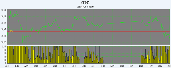 11月24日,隔夜鄭棉CF1705合約沖高下試,今日在早盤多頭買盤推動(dòng)下回升,午后沖高下滑,日線形成陽(yáng)線星。日內(nèi)成交量放大,持倉(cāng)量增加?;久媲闆r:現(xiàn)貨市場(chǎng)價(jià)格穩(wěn)中微升,疆內(nèi)雙28、雙29級(jí)手摘監(jiān)管庫(kù)提貨價(jià)在15800-16200元/噸,成交量相對(duì)不多,因近期棉花期貨漲勢(shì),多數(shù)扎花廠重心在套保操作。長(zhǎng)絨棉價(jià)格略有上浮,近期紡廠詢價(jià)增多,但成交量仍未有效跟進(jìn),阿瓦提地區(qū)137級(jí)站臺(tái)自提價(jià)格在20800元/噸毛重。