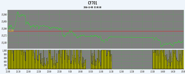 11月8日,隔夜鄭棉CF1701合約沖高下滑,今日盤中在多頭平倉盤打壓下震蕩走低,日線形成長上影線的陰線。日內(nèi)成交量放大,持倉量減少?;久媲闆r:北疆奎屯、精河、烏蘇等地棉籽交售價格為2.52-2.55元/公斤,較10月中下旬回落0.03-0.05元/公斤,油廠和短絨廠收購再度減速;而南疆棉籽交售價則穩(wěn)定在2.50-2.55元/公斤。據(jù)了解,受降溫降雨的影響,近日北疆秋桃、霜后花的上市量逐漸上升,籽棉水分及棉花品級、斷裂比強度、纖維長度、馬值等指標有不同程度的下降,特別是淡點污棉的比例上升,軋花廠收購越來越謹慎。