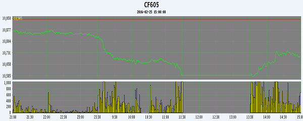 2月25日,隔夜鄭棉盤整,今日早盤CF1605合約下滑,午后創(chuàng)新低,隨后在多頭買盤與空頭回補推動下回升,日線形成1/2下影線的陰線;CF1609合約早盤下跌,午后在空頭回補推動下回升,日線形成1/2下影線的陰線,日內(nèi)近月成交量放大,持倉量近減遠增?;久媲闆r:一些疆內(nèi)棉花加工企業(yè)、棉花經(jīng)營商反映,受鄭期各合約連續(xù)大幅跳水(CF1609逼近10000)以及國家將于4月份啟動國儲棉輪出的傳言喧囂塵上的影響,棉紡織廠、中間商節(jié)后棉花現(xiàn)貨采購剛一啟動就踩了“剎車”,河南、江蘇、山東等地部分用棉企業(yè)雖然因原料庫存偏低亟需補充,但不會一次性采購很多,采用分批購買、隨用隨買的方式;一些庫存相對充足的紡企則對棉企報價不理不睬,只觀望不入市。阿克蘇、巴楚幾家棉企表示,由于下游老客戶不詢價、不報價,一些高品級但低品質(zhì)(長度27mm及以下,強力28CN及以下,馬值為C2、C1)的皮棉甚至成為“燙手山芋”,買家不接盤,賣家不知如何報價,只能等待國儲棉輪出政策明確以后才有可能恢復(fù)活躍。
