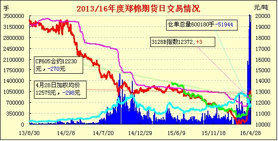 4月28日,隔夜鄭棉沖高回落,今日橫向震蕩下滑,午后在平倉(cāng)盤打壓下走低,尾盤略有反彈,日線形成陰線。日內(nèi)成交量萎縮,持倉(cāng)近減少?;久媲闆r:“立夏”將至,長(zhǎng)江流域及大多數(shù)內(nèi)陸棉區(qū)將進(jìn)入營(yíng)養(yǎng)缽育苗大田移栽季節(jié),由于今年該流域植棉面積再度出現(xiàn)驟減局面,且缽育棉很少,幾乎看不到缽育棉塑料溫棚苗床。江蘇大豐曾經(jīng)是百分之百的缽育棉棉花種植區(qū),從該區(qū)近期調(diào)查的數(shù)據(jù)信息看,今年該區(qū)預(yù)計(jì)植棉面積不足3萬(wàn)畝,而且種植的形式顯得原始粗放,夾雜有育苗移栽、直播棉、套作棉、實(shí)邊棉和(油)后棉等。