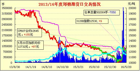 5月20日,隔夜鄭棉沖高調(diào)整,今日早盤(pán)慣性下探后在多頭買盤(pán)與空頭回補(bǔ)支撐下回升,隨后區(qū)間震蕩,CF1909合約日線形成陽(yáng)線星,CF1701合約報(bào)收小陰線。日內(nèi)成交量萎縮,持倉(cāng)量減少。基本面情況:從調(diào)查來(lái)看,相較于北疆博樂(lè)、塔城、精河、沙灣及奎屯等地降溫降雨導(dǎo)致的立枯病、爛根、死苗(塔城部分棉區(qū)遭到兵雹洗劫)頻發(fā),南疆庫(kù)爾勒、阿克蘇、喀什(含巴楚、麥蓋提、伽師等)棉苗整體受災(zāi)并不非常嚴(yán)重,4月份降水導(dǎo)致土壤板結(jié)棉花出苗率不高,再加上農(nóng)業(yè)技術(shù)部門(mén)、種子站等分別指導(dǎo)農(nóng)民防風(fēng)抗災(zāi),棉花需要補(bǔ)種或重播的面積不宜夸大。庫(kù)車、柯坪、沙雅等地農(nóng)民認(rèn)為,截止目前阿克蘇、喀什棉區(qū)受災(zāi)面積和受災(zāi)程度都低于2015年。