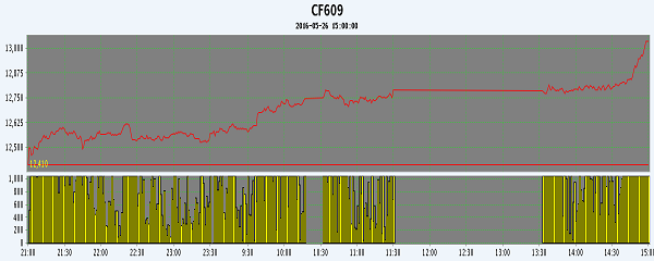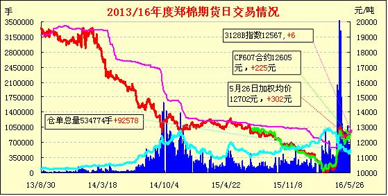 5月26日,隔夜鄭棉橫向震蕩,今日盤中增倉上行,重心抬高,尾盤放量收于漲停,日線形成長陽。日內(nèi)成交量放大,持倉量增加?;久媲闆r:5月25、26日,南疆阿克蘇、巴楚、庫爾勒等地站臺2128C2(2128B2、2129B2、2129C2已基本售罄)、2127C2級的皮棉公檢毛重報價12600-12800元/噸、12200-12400元/噸(地方軋花廠),較上周報漲了50-100元/噸,但成交比較零星。一方面由于輪出進(jìn)口棉資源越來越少,交易商競拍和加價越發(fā)激烈,一些棉紡織廠、貿(mào)易商“退而求其次”,競拍2013年度收儲的高品質(zhì)新疆棉,導(dǎo)致國產(chǎn)棉成交價連上“臺階”;另一方面24日以來,鄭棉期貨與現(xiàn)貨掛牌交易盤面價格整體較大幅度反彈,倉單由對現(xiàn)貨貼水400-500元/噸調(diào)整為持平甚至有100-200元/噸升水,軋花廠和貿(mào)易商則及時漲價跟進(jìn)。