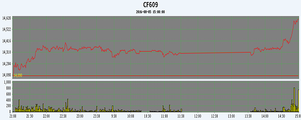 | CF609 | 14190 | 14640 | 14130 | 14620 | 14355 | 265 | 22086 | -2456 | 60069978 | 44524 | -3076 |