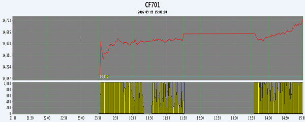 | CF705 | 14360 | 14875 | 14360 | 14870 | 14650 | 445 | 24026 | -1894 | 465930 | 65322 | 3400 |