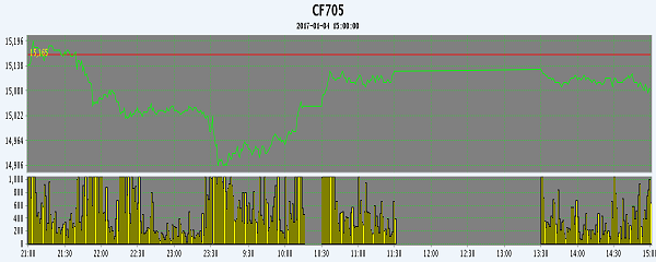 主力CF705合約當(dāng)日交易走勢圖