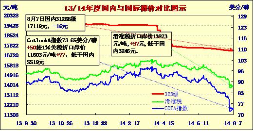 國內(nèi)外棉價(jià)對(duì)比圖表(08-07)
