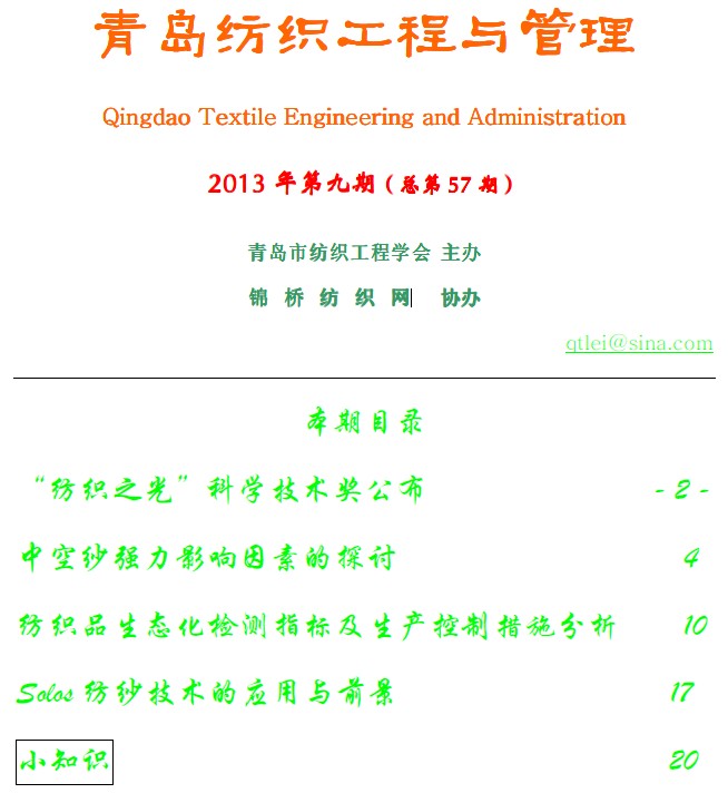 《青島紡織工程與管理》2013年第9期