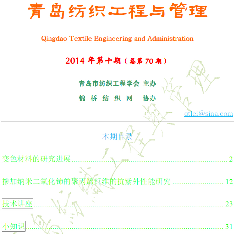 《青島紡織工程與管理》2014年第10期